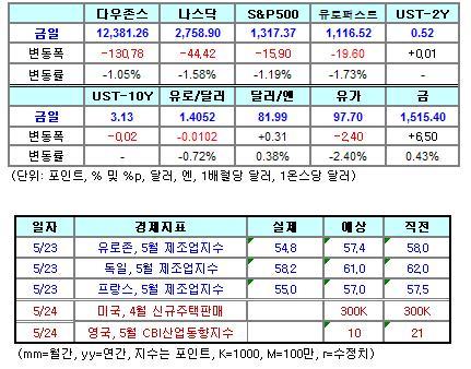 - 스페인 지방선거에서 집권 사회당 패배. 그리스 정부 민영화 계획 발표 불구 시장 불안감 지속