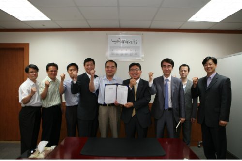 극동건설은 1일 오전 서울 충무로 극동빌딩 본사에서 송인회 회장(오른쪽에서 네번째)과 윤춘호 대표이사(왼쪽에서 네번째), 하준수 노조위원장(가운데) 등 노사 교섭위원 10여명이 참석한 가운데 2011년 임단협 조인식을 개최했다.