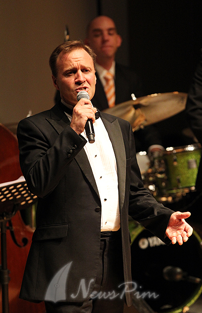 지난 27일 저녁 서울 광화문 KT올레스퀘어 드림홀에서 뉴스핌(NEWSPIM)과 함께하는 JAZZ, 던컨 갤러웨이 & 이지영 쿼텟(베이스/최은창, 드럼/션 피클러, 색소폰/임달균)의 공연이 열린 가운데 영국의 대표 재즈 싱어 던컨 갤러웨이가 멋진 무대를 선보이고 있다. <사진=김학선 기자>