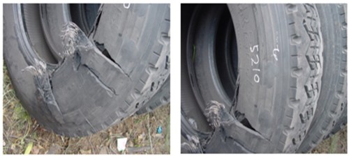 브레이크 드럼·림 등에서 발생한 높은 열(약 400℃)로 인해 타이어 내부 압력이 크게 높아지는 경우 타이어가 찢어지는 등 파손되는데 타이어가 많이 경화돼 있는 경우 파열되는 것이다.