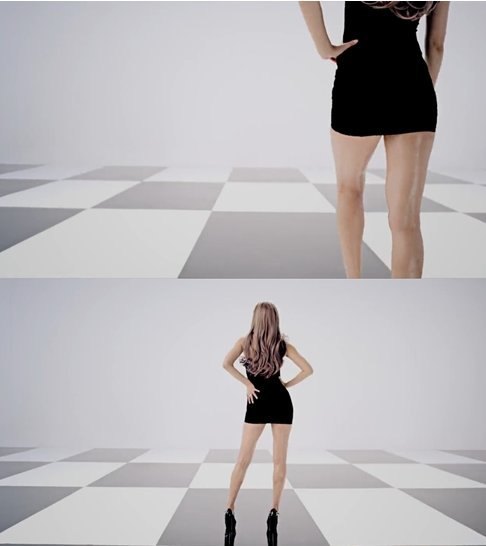 뮤직비디오에서 지드래곤은 몸의 굴곡이 그대로 드러나는 블랙 미니원피스를 입고 매끈한 모델급 물광다리와 군살없는 S라인을 드러냈다.