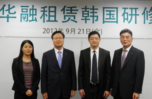 | <사진설명:중국 최초 리스금융회사인 화융금융리스 주식회사 임직원 30명이 자동차 금융사업을 배우기 위해 지난 21일 역삼동 소재 하나캐피탈 본사를 방문했다. (사진 왼쪽부터) 중국 화융금융리스 뤄화링 부사장, 하나캐피탈 이영준 대표이사, 화융금융리스 쉬제 부사장, 하나캐피탈 원도희 부사장.> |