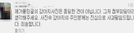 이어 제보자는 "사진 속 강아지의 주인분께는 진심으로 사과 말씀 드립니다"라고 밝혔다.