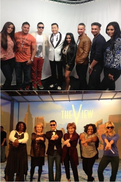이어 싸이는 "에에에에 섹시 레이디스(Ehhhh Sexy ladies)"란 멘션과 함께 미국 ABC의 유명 토크쇼 '더 뷰'의 진행자 바바라 월터스를 비롯한 출연진들과 말춤 포즈를 취하고 있는 사진도 함께 공개했다.