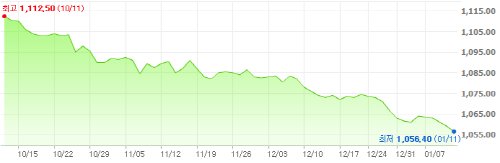 원/달러 환율은 1차 지지선인 1060원이 무너진 만큼 점차 1050원 하향 돌파를 시도할 것으로 보인다. 원화강세 추세가 워낙 강하고 1050원대에서도 수출업체 네고물량이 대거 대기하고 있어 하락 압력으로 작용할 것으로 보인다.