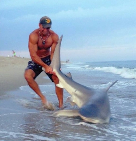 최근 해외 SNS를 통해 상어 낚은 낚시꾼 사진이 공개돼 인기를 끌었다.