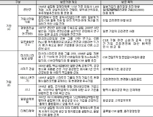올해는 윤리경영을 주제로 기업 뿐 아니라 경단련, 기업시민협의회, 경영윤리실천연구센터, 일본총합연구센터 등과 같은 윤리경영⋅CSR 전문 연구기관 등 10여 곳을 방문하게 된다.