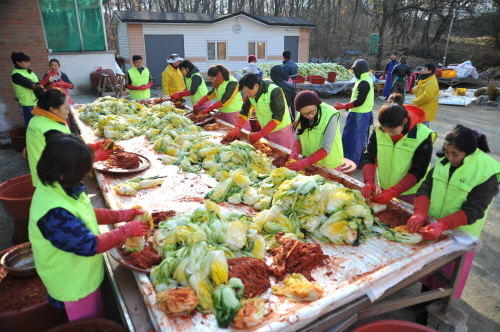 [뉴스핌=이동훈 기자] 건설공제조합 임직원이 19일 경기도 용인시에 있는 사회복지법인 성가원을 방문해 김장나눔 봉사활동을 했다.