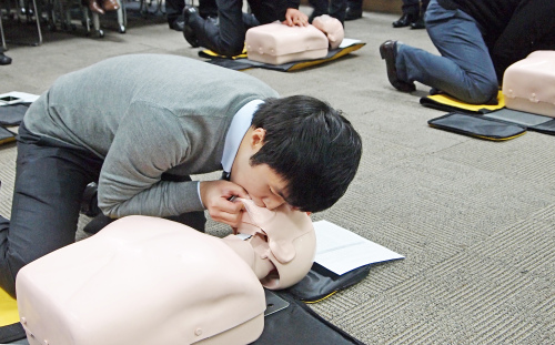 회사 측은 대한응급구조사협회 주관 심폐소생술 민간 자격증을 여성 21명을 포함해 금융 서비스 직원들이 단체로 받게 된 건 처음이라고 설명했다.