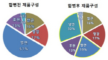현대제철 관계자는 “현대하이스코 냉연부문 합병으로 열연에 대한 매출의존도가 50% 이상이던 매출구조에서 전 품목 매출비중이 30% 이하인 다품목 제품구조로 탈바꿈하게 된다”며 “보다 안정적인 수익구조를 창출이 가능할 것”이라고 말했다.