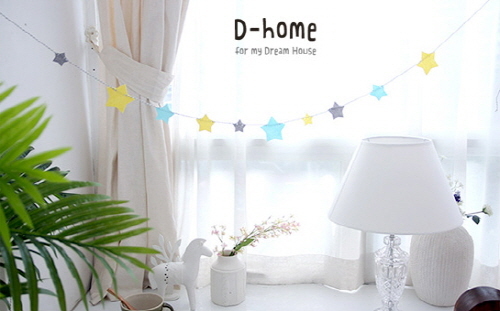 ‘하트 가랜드’는 아기자기한 인형들과 함께 밋밋한 벽에 살짝만 걸어주어도 러블리한 인테리어를 연출해 신혼부부들 사이에서 인기가 높다. 색상을 레드, 아이보리, 핑크블루 중 택 1 가능하고 가격은 3900원. ‘DIY 파스텔 별 가랜드’는 별 펠트 구멍 사이로 실을 끼워 걸어주기만 하면 완성된다.