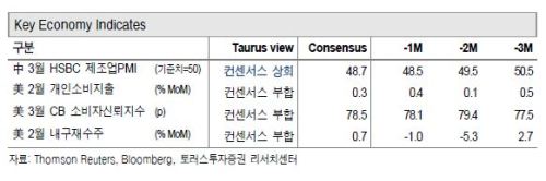 반면 토러스투자증권은 3월 HSBC 제조업 PMI가 컨센서스를 상회할 것으로 예상했다.