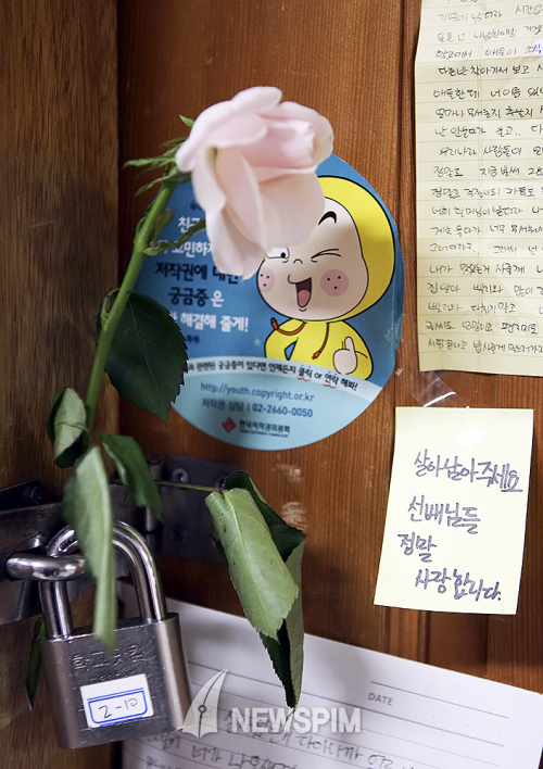 [뉴스핌=강소연 기자] 18일 오후 경기도 안산 단원고등학교 2학년 교실 곳곳에 전남 진도 해상 침몰 여객선에서 친구들이 오길 기원하는 글귀들이 남아 있다.