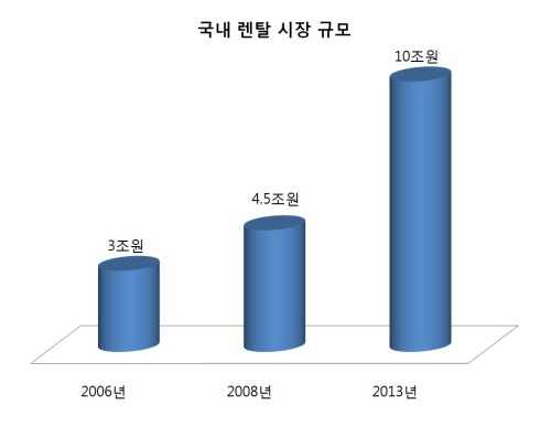 18일 한국렌탈협회에 따르면 국내 렌탈 시장의 규모는 2006년 3조원에서 2008년 4조5000억원, 2013년에서는 10조원을 기록하는 등 초고속 성장 중이다. 국내에서 렌탈 서비스를 제공하는 업체만 2만4000개로 추산된다. 생활가전 부문의 경우 1100개에 달한다.