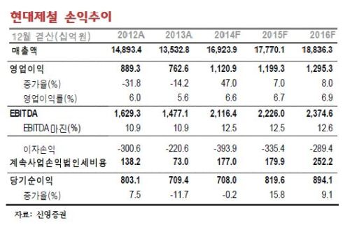 신영증권의 조강운 연구원은 "이자비용이 올해를 고점으로 낮아지고, 부채비율도 하락할 뿐만아니라 제품구성도 올해는 전년에 비해 중국과 경쟁하는 봉형강류의 비중이 10%p 낮아진 28%수준, 판재가 51%로 10%p 높아질 것"이라고 분석했다.