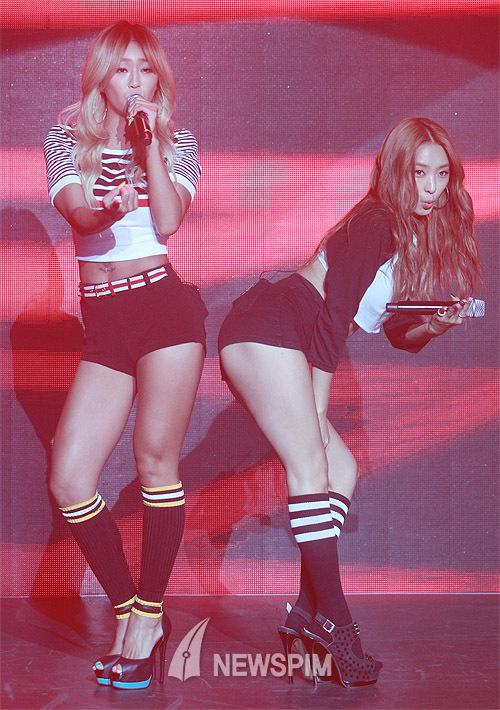 걸그룹 씨스타 멤버 보라와 효린이 21일 오후 서울 강남구 일지아트홀에서 두 번째 미니앨범 ‘터치 앤 무브(TOUCH & MOVE)' 쇼케이스에 참석해 열정적인 무대를 선보이고 있다.