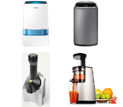 | ▲윗줄왼쪽부터 삼성 인버터제습기, 삼성 아가사랑 플러스. 아랫줄왼쪽부터 돌 요나나스, 휴롬 원액기. |
