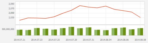 한편, 이날 서울외환시장에서 원/달러 환율은 전거래일보다 1.1원 내린 1036.5원에 거래를 마쳐 대외 불안 영향이 제한적이었다. 증권가는 이날 환율이 하락한 것은 수출업체 네고물량(달러 매도)에 따른 것으로 분석했다. 오바마 미국 대통령의 이라크 공습 승인 소식이 전해지자 안전자산 선호 심리가 강화되며 환율이 장중 1040원을 상향 돌파하기도 했지만, 시간이 가면서 상승폭이 줄었다.