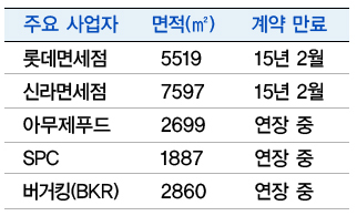 현재 식음료매장은 SPC그룹의 브랜드와 함께 아모제푸드 등의 계약이 만료를 앞두고 있다. 이들 역시 사업자가 선정되던 지난 2007년과 달리 해외 진출이 더욱 요원해졌다는 것이 이번 입찰의 경쟁을 가속시키고 있다.