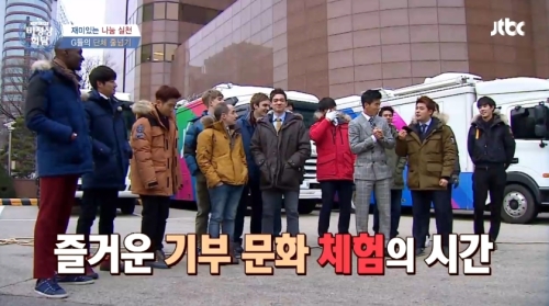 지난 1월 5일 방송된 JTBC '비정상회담'의 '좋은 세상 만들기'편에서는 G12와 션이 줄넘기를 한 횟수만큼 기부를 하기로 약속했다.