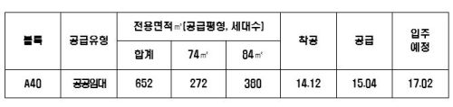 이 단지는 공공임대리츠 방식이 도입됐다. 국민주택기금과 LH가 출자해 설립한 공공임대리츠 ′NHF제1호공공임대개발전문위탁관리부동산투자회사′가 사업을 시행한다. 주택건설 과 공급, 분양전환 등은 LH가 담당한다.