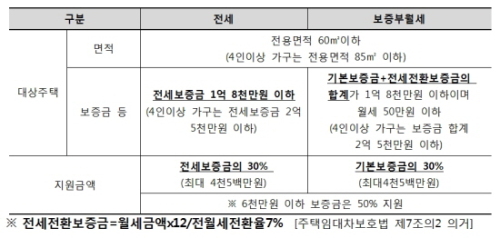 최근 주택 임대차시장이 전세에서 보증부월세로 바뀌고 있는 만큼 보증부월세 세입자도 지원 대상에 포함하기로 했다는 게 시의 설명이다.