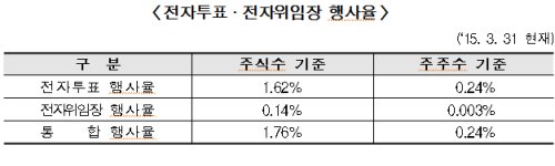 [뉴스핌=우동환 기자] 올해 3월부터 주주 편의를 위해 도입된 전자투표 행사율이 아직은 미미한 것으로 조사됐다.