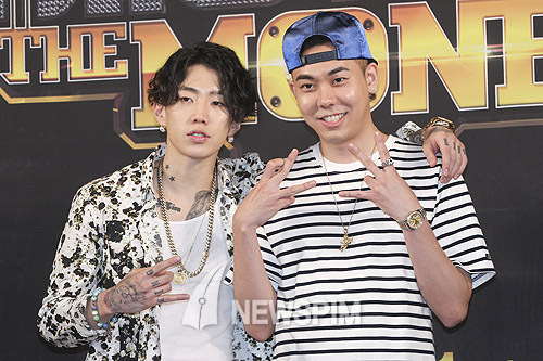 [뉴스핌=이형석 기자] 래퍼 박재범과 로꼬가 24일 오후 서울 여의도 63스퀘어에서 열린 '쇼미더머니4' 제작발표회에서 취재진을 향해 포즈를 취하고 있다.