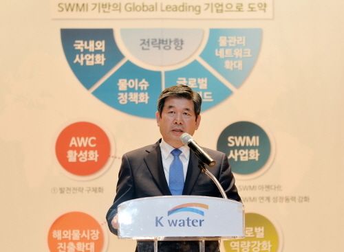 | 글로벌 리딩 전략을 선포하고 있는 최계운 K-water사장 <사진=한국수자원공사> |