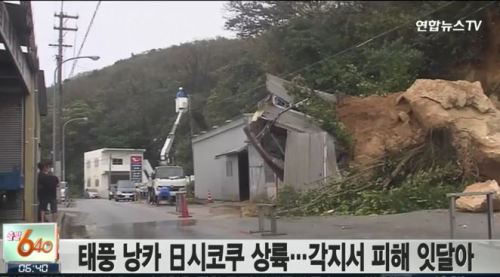 | 16일 밤 제11호 태풍 낭카가 일본에 상륙해 사망자 2명과 수십명의 부상자를 냈다. <사진=연합뉴스 TV 캡쳐> |