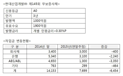 현대산업 관계자는 “이번 회사채 발행으로 조달한 자금은 오는 27일 만기가 돌아오는 1300억 원 회사채 상환에 사용할 계획”이라고 말했다.