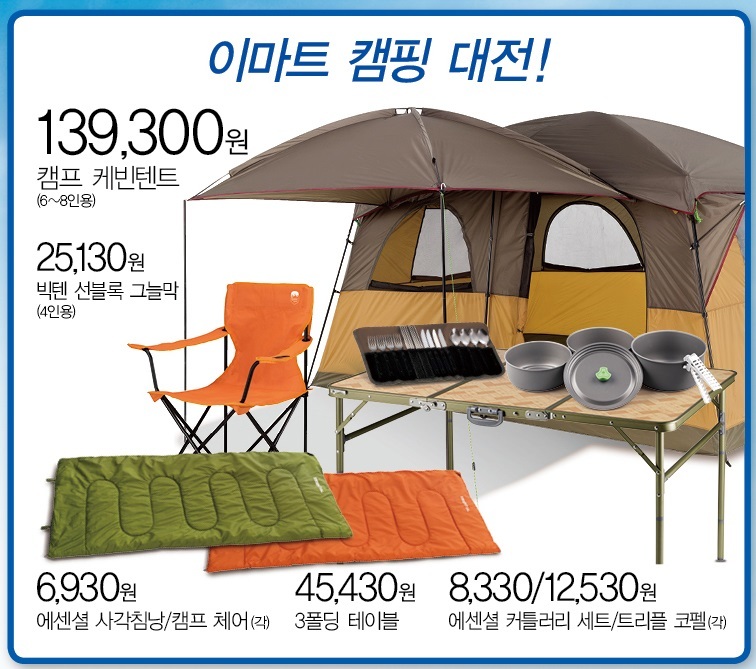 이정우 이마트 캠핑용품 바이어는 “캠핑시장이 세분화되고 있어 소비 트랜드에 맞춘 다양한 캠핑 용품을 기획했다”며 “이번 행사를 통해 본인의 캠핑 스타일에 맞는 용품들을 저렴한 가격에 장만할 수 있는 기회가 될 것”이라고 말했다.
