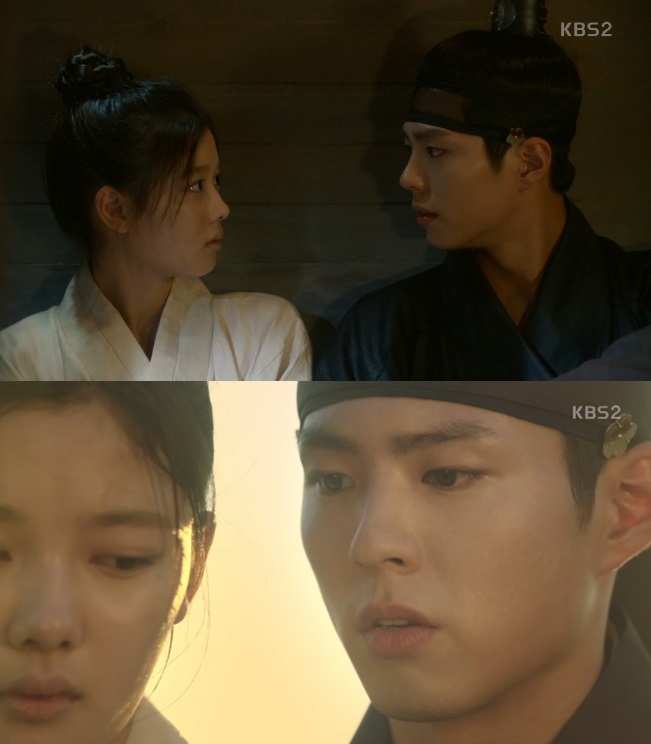 6일 방송된 KBS 2TV 월화드라마 '구르미 그린 달빛' 6회에서 청나라 사신에게 끌려갈 위기에 처한 홍라온(김유정) 때문에 안타까워하는 이영(박보검)의 모습이 그려졌다.
