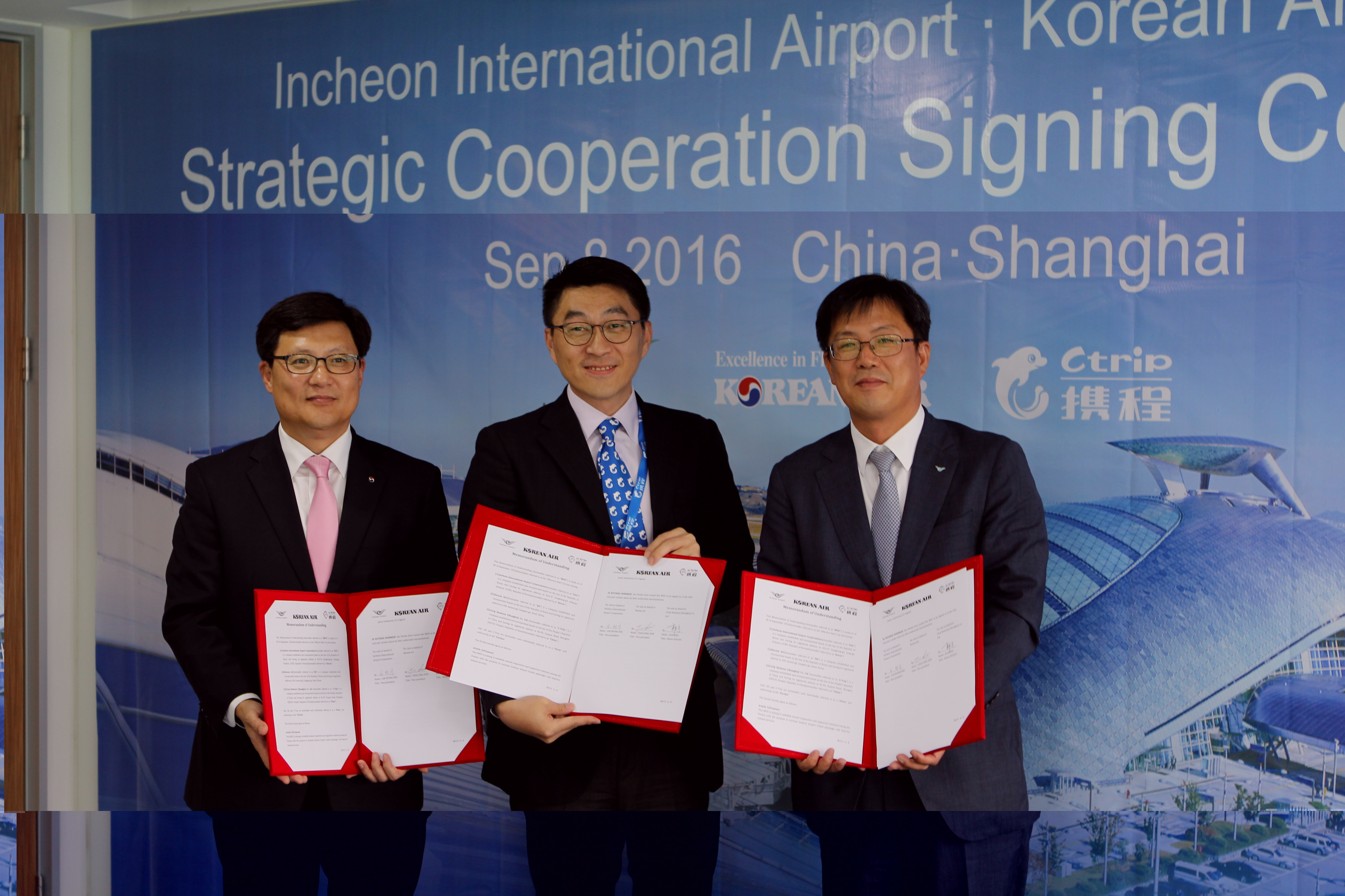 [뉴스핌=이성웅 기자] 대한항공은 중국 환승객 유치를 위해 ‘대한항공·인천공항공사·시트립 3사간 마케팅 업무 협약식’을 가졌다고 9일 밝혔다.