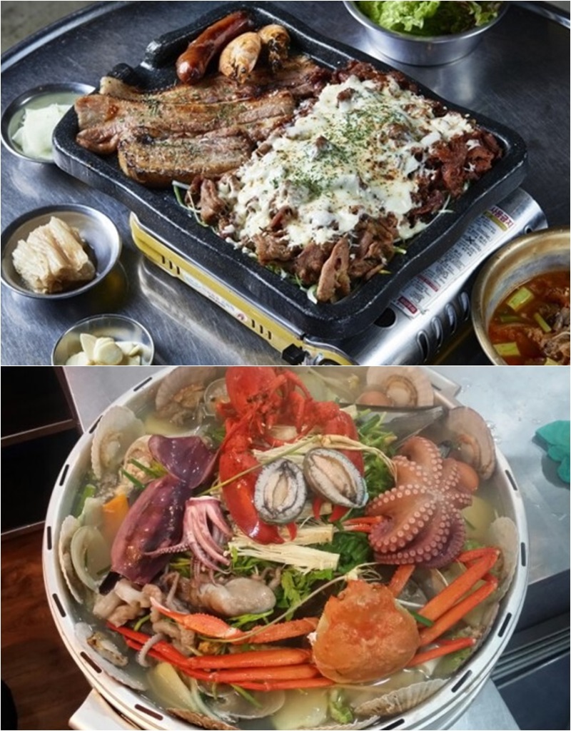 전복, 소라, 낙지, 통문어 등 해산물은 기본에 키조개, 백합, 참조개, 민들조개 등 이색조개까지 포함해 무려 25가지 해산물을 자랑한다. 여기에 바닷가재까지 더해 다양하고 푸짐한 한판을 맛볼 수 있다.