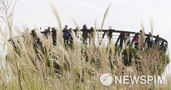 | 서울억새축제가 개막한 7일 오후 서울 마포구 하늘공원 억새밭을 찾은 시민들이 가을을 만끽하고 있다. <사진=이형석 사진기자> |