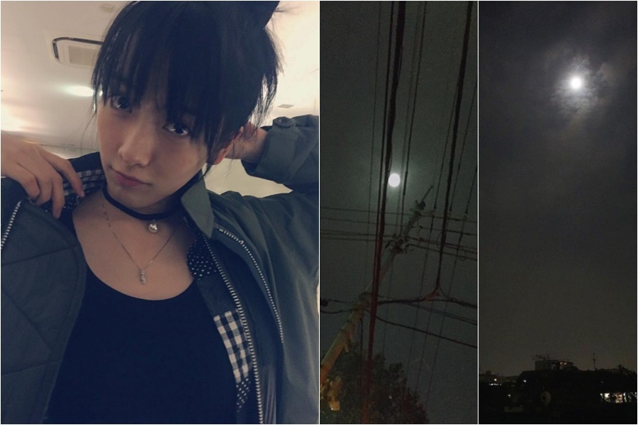 이어 강지영은 14일 자신의 인스타그램에 "Because of the rain i couldnt see the super moon instead heres a picture i took yesterday!(비 때문에 슈퍼문을 볼 수 없었어요. 대신 어제 찍은 사진이에요) #Supermoon #슈퍼문은나타나지않았다"라며 구름에 가린 달 사진을 한 장 더 게재했다.