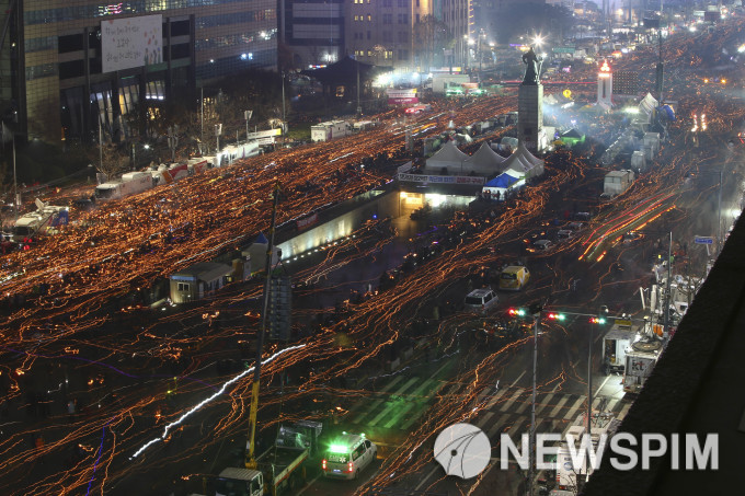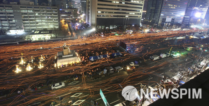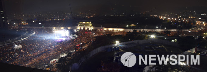 [사진공동취재단] 박근혜 대통령의 퇴진을 촉구하는 시민들의 요구가 거세지고 있는 가운데 26일 오후 서울 광화문 세종대로 일대에서 박 대통령의 퇴진을 촉구하며 시민들이 촛불집회를 갖고 있다.