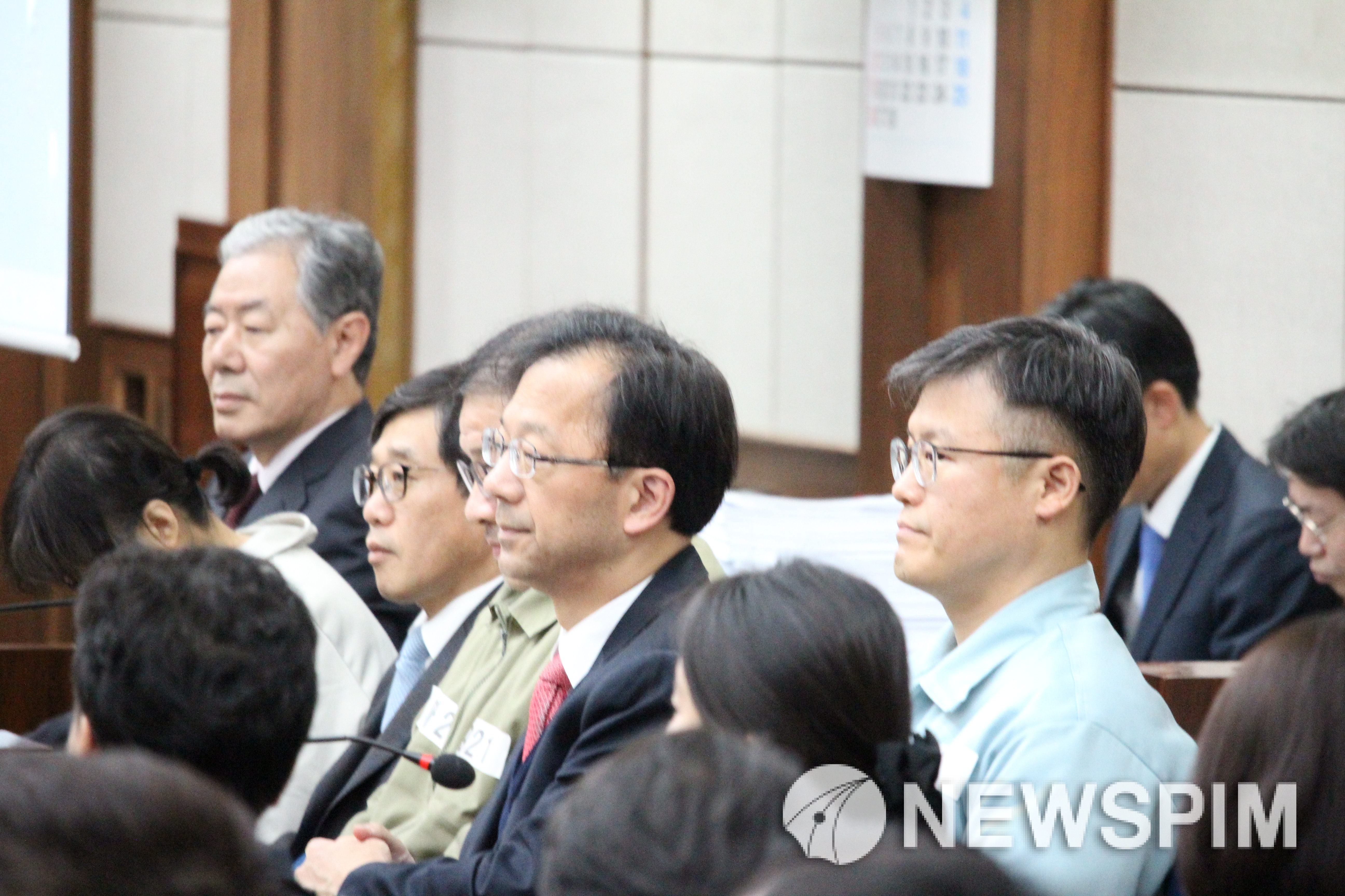 [뉴스핌=이성웅 기자] '최순실 국정농단' 사태의 첫 공판이 시작됐다. 서울중앙지법 형사합의22부(부장판사 김세윤)는 5일 오후 2시10분부터 서울 서초구 법원종합청사 417호에서 최순실씨, 안종범 전 청와대 정책조정수석, 정호성 전 부속비서관 등에 대한 첫 공판을 가졌다.