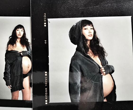 공개된 사진 속에는 만삭으로 배가 부른 변정수의 모습이 담겨 있다. 변정수는 임신 중에도 균형잡힌 몸매로 시선을 사로잡는다.