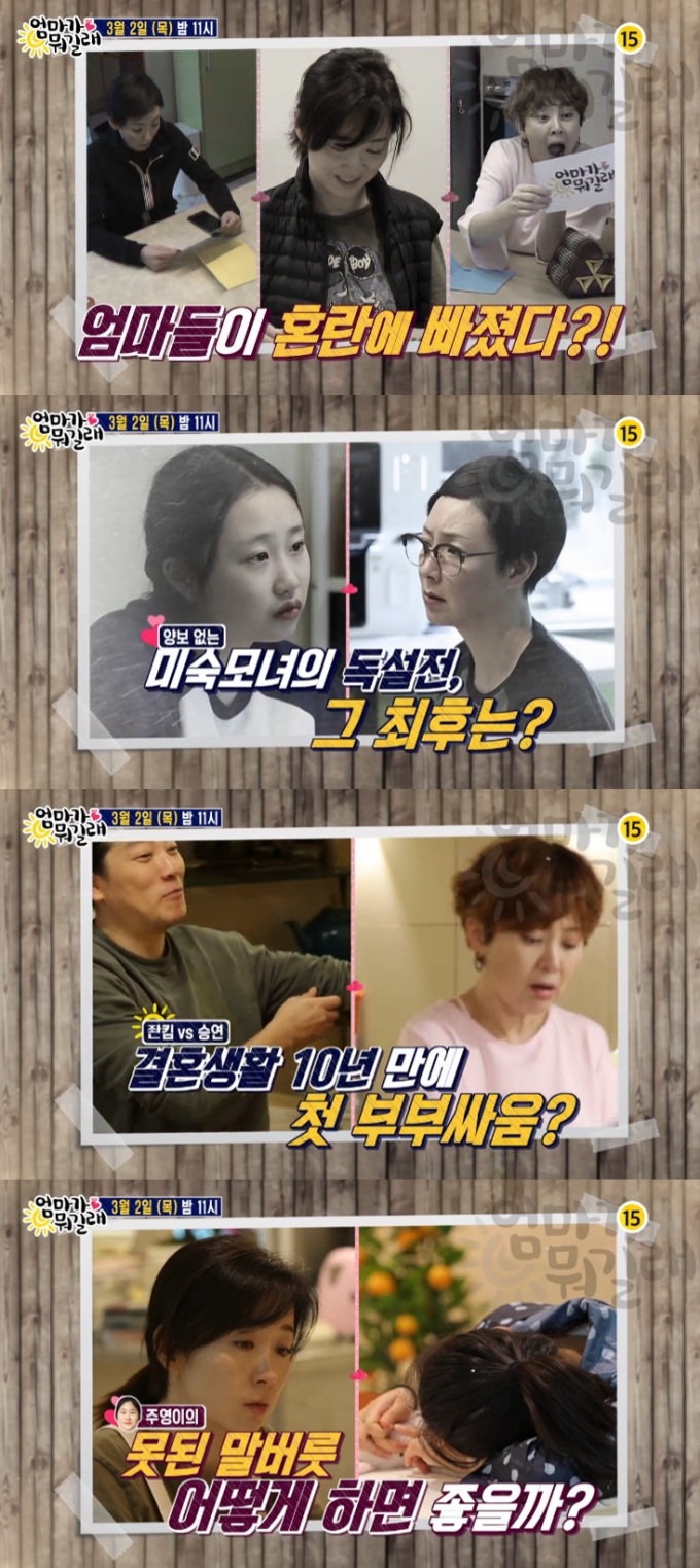 이날 방송에서는 이승연, 윤유선, 이상아에게 제작진으로부터 메시지가 전달된다. 엄마들 모두 깜짝 놀라 무슨 내용이 담겼는지 궁금증을 자아낸다.