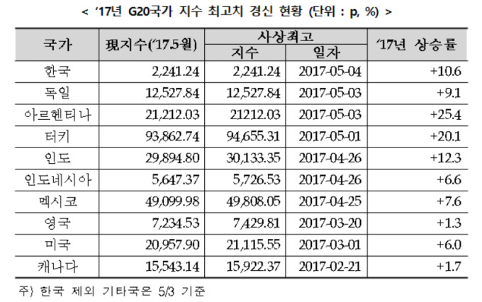 올해 코스피는 10.6% 상승해 G20 국가들 가운데 상위 4번째 상승률을 기록했다.