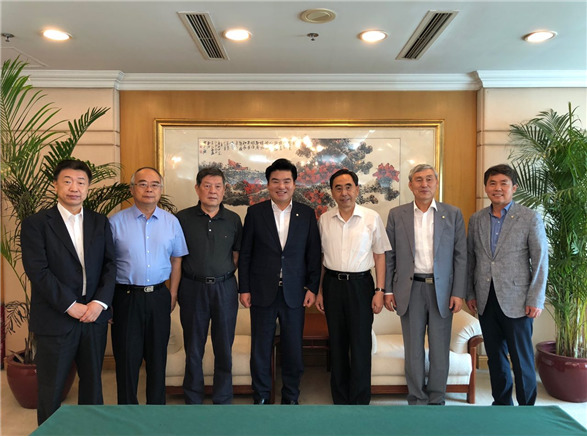 | 국회 기우회가 중국을 방문해 제 1회 3국 의원 친선 바둑교류 초청장을 전달했다. (왼쪽부터) 중국기원원장, 황젠추 전인대의원, 두잉 정협위원, 원유철 기우회장, 주샤오던 주임(중국측 단장), 조훈현의원, 김현권의원. [사진=원유철 의원실] |