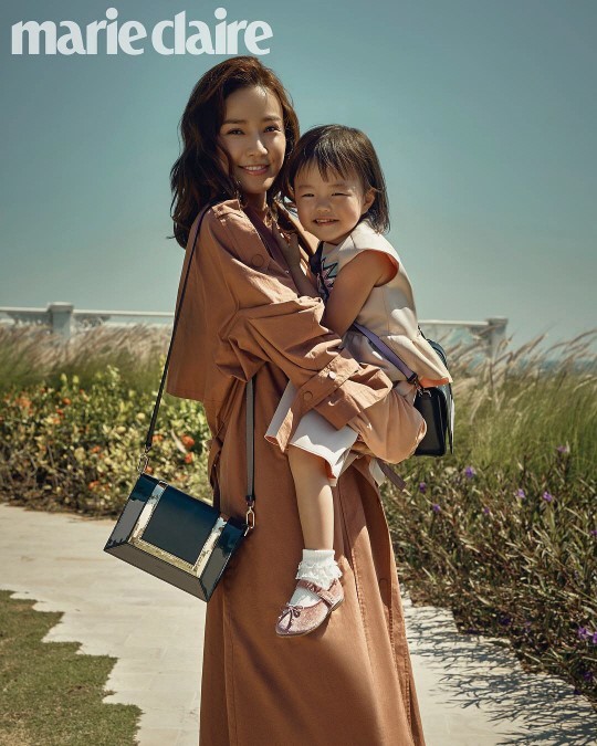 照片中,一家四口身着正装,依靠在台阶上,他们微笑面对镜头微笑合影。另一张照片,孙泰英抱着女儿,一展母女情深。