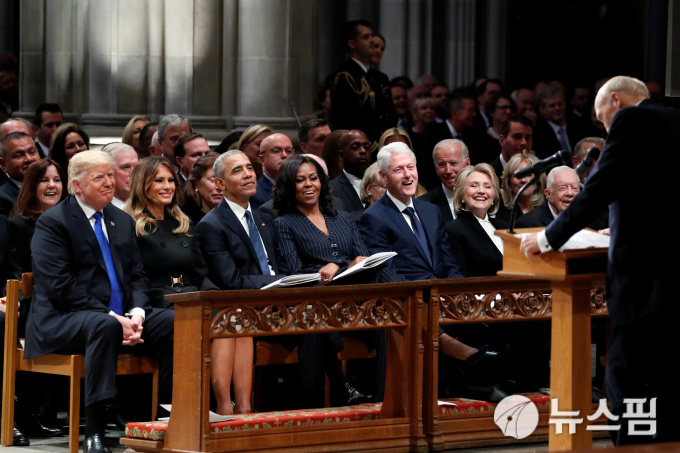 생전 부시 전 대통령과 앙숙으로 통했던 도널드 트럼프 미국 대통령과 멜라니아 트럼프 여사가 장례식장에 일찌감치 모습을 드러냈고, 버락 오바마 전 대통령과 미셸 오바마 여사, 빌 클린턴 전 대통령과 힐러리 클린턴 전 국무장관, 그리고 지미 카터 전 대통령과 그의 아내 로살린 카터 여사도 부시 전 대통령의 마지막을 함께 했다.