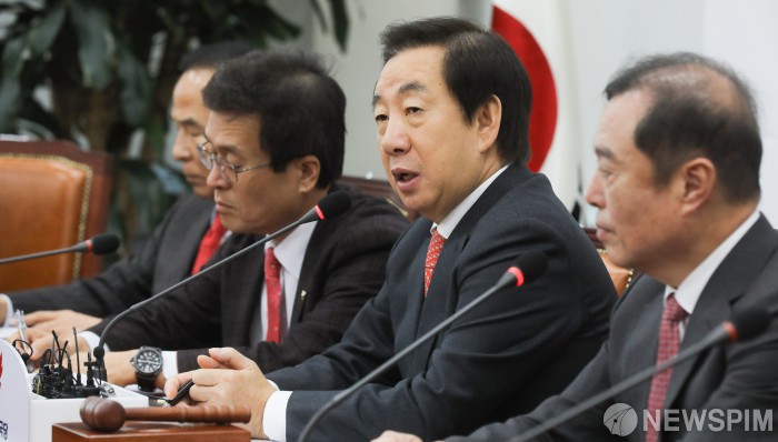 [서울=뉴스핌] 최상수 기자 = 김성태 자유한국당 원내대표가 10일 오전 서울 여의도 국회에서 열린 비상대책위원회의에서 발언하고 있다. 2018.12.10 kilroy023@newspim.com