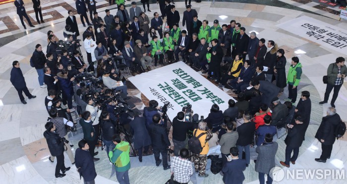 [서울=뉴스핌] 최상수 기자 = 10일 오후 서울 여의도 국회 로텐더홀에서 ‘선거제도 개혁 촉구’를 위한 원내외 7개 정당-정치개혁공동행동 시국회의가 열리고 있다. 2018.12.10 kilroy023@newspim.com
