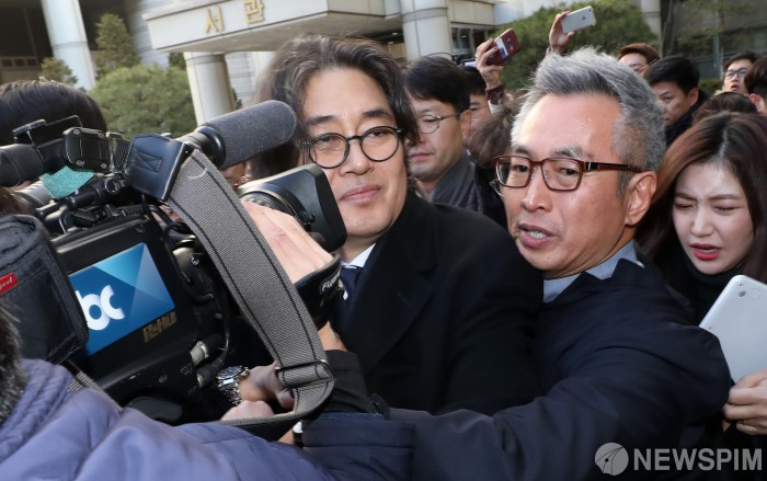[서울=뉴스핌] 정일구 기자 = '황제보석' 논란이 불거진 이호진 전 태광그룹 회장이 12일 오전 서울 서초구 고등법원에서 열린 재파기환송심 1차 공판을 마치고 법정을 나서고 있다. 2018.12.12 mironj19@newspim.com