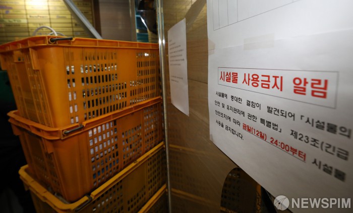 [서울=뉴스핌] 정일구 기자 = 12일 오후 서울 강남구 삼성동 대종빌딩이 붕괴 위험으로 퇴거 조치가 이뤄진 가운데 입주자들이 이삿짐 옮기고 있다. 서울시는 대종빌딩이 안전진단 최하 등급인 E등급으로 추정되는 등 붕괴발생 위험성이 있어 입주자를 퇴거 조치했다. 2018.12.12 mironj19@newspim.com