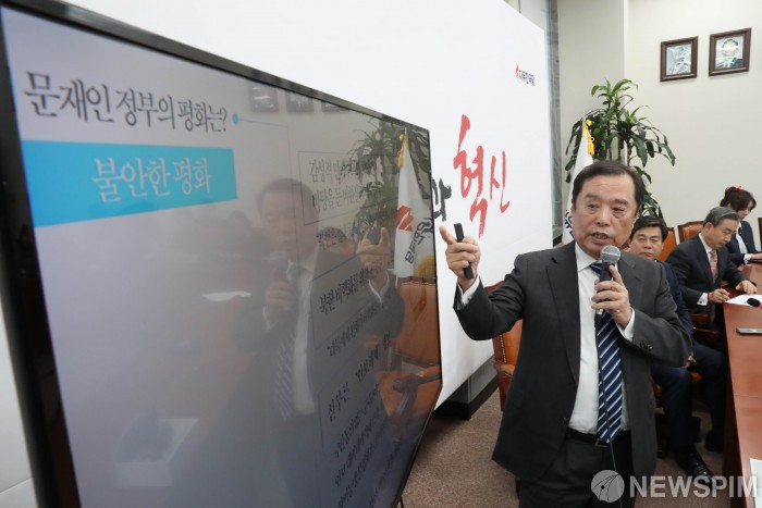 [서울=뉴스핌] 김학선 기자 = 김병준 자유한국당 비상대책위원장이 13일 국회에서 평화이니셔티브 관련 기자간담회를 하고 있다. 2018.12.13 yooksa@newspim.com